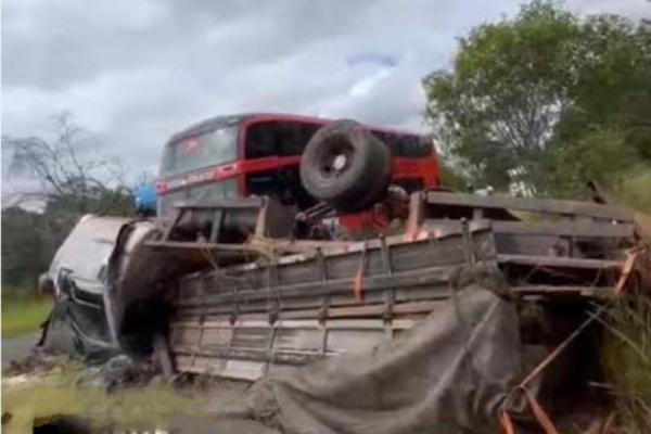 De acordo com a Polícia Militar, os veículos trafegavam em sentidos contrários quando ocorreu a colisão frontal. O impacto provocou danos significativos aos caminhões e deixou ocupantes presos às ferragens.