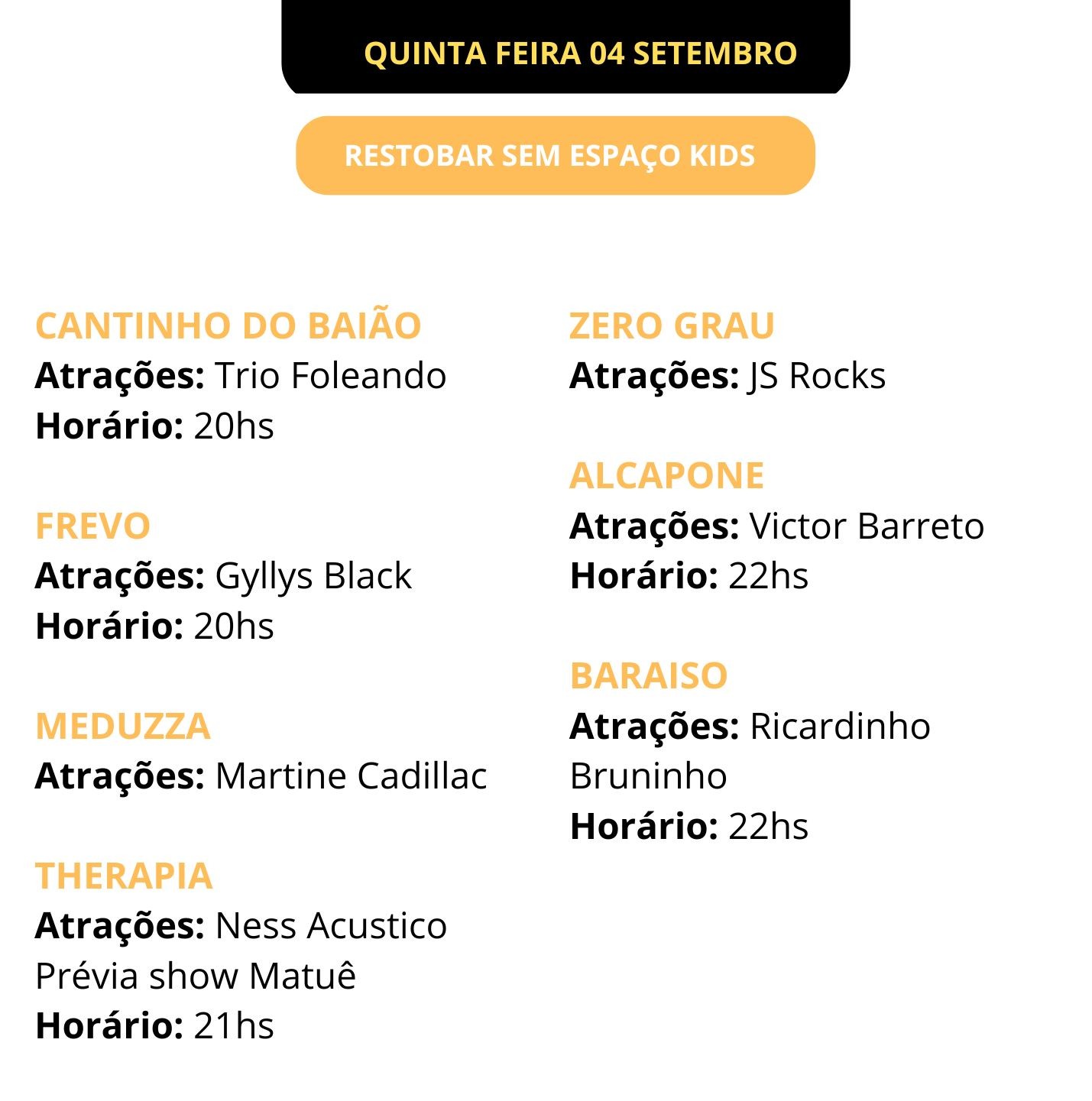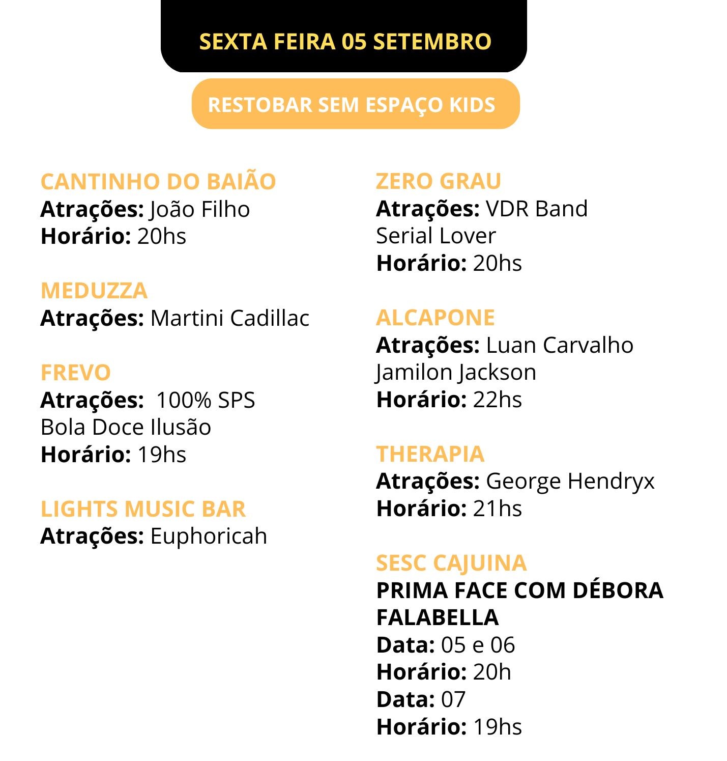Agenda cultural de 04 a 08 de setembro - Agenda Cultural