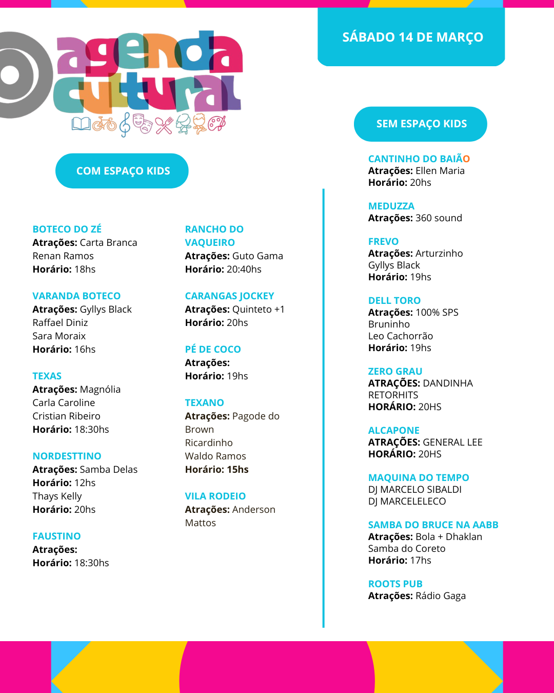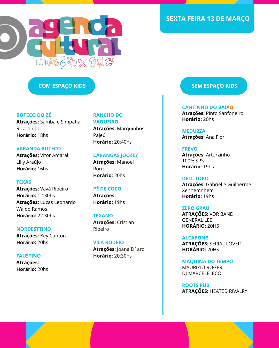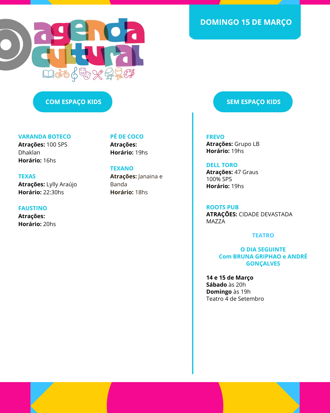 Agenda cultural de 13 A 15 de março