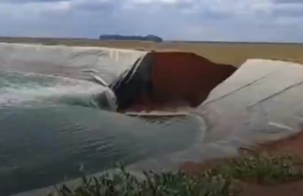 Um reservatório rompeu na Fazenda Ribeirão, na zona rural de Baixa Grande do Ribeiro, no Sul do Piauí, nesta sexta-feira (27). Segundo a prefeitura, parte de uma plantação de soja da propriedade foi atingida e, até o momento, não há registro de feridos.