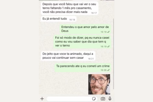 “Eu estou vendo meu vestido desde o ano passado. Você vai deixar para ver seu terno em cima da hora? Que consideração é essa para o casamento? Se for para casar assim, eu não quero casar”, teria dito a influenciadora.
