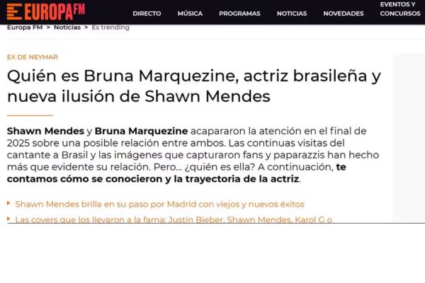 O interesse internacional não parou por aí. Sites espanhóis como Europa FM e Los40 publicaram matérias explicando quem é Bruna Marquezine para o público europeu. Em uma das manchetes, o Europa FM destacou a atriz como “ex-namorada de Neymar”, relembrando a relevância do jogador na Espanha durante sua passagem histórica pelo Barcelona.