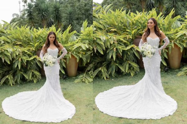 Na sexta-feira (10), Lexa subiu ao altar com o ator Ricardo Vianna em uma cerimônia no Rio de Janeiro, cercada de amigas famosas como Tati Machado, Bruna Griphao e Pocah. A cantora optou por um vestido modelo sereia, feito sob medida por Israel Valentim em tempo recorde. A peça tomara que caia abraçava a silhueta até os quadris e se abria em uma cauda ampla. Bordados em formato de pétalas percorriam todo o corpo do vestido, trazendo um ar romântico e sensual. O visual foi completado com véu longo, luvas bordadas e cabelo solto com risca central, além de um buquê branco minimalista — tendência forte entre noivas modernas.