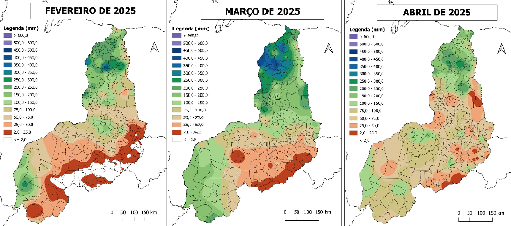 Dados da Secretaria de Defesa Civil do Piauí (Sedec) apontam que janeiro foi o único mês com precipitação satisfatória. Desde então, o déficit de chuvas chega a 40%, com cada mês do trimestre fevereiro a abril acumulando entre 20 e 25 dias sem chuva, resultando em cerca de 200 mm abaixo da média, segundo Werton Costa, diretor de Prevenção e Mitigação da Sedec.