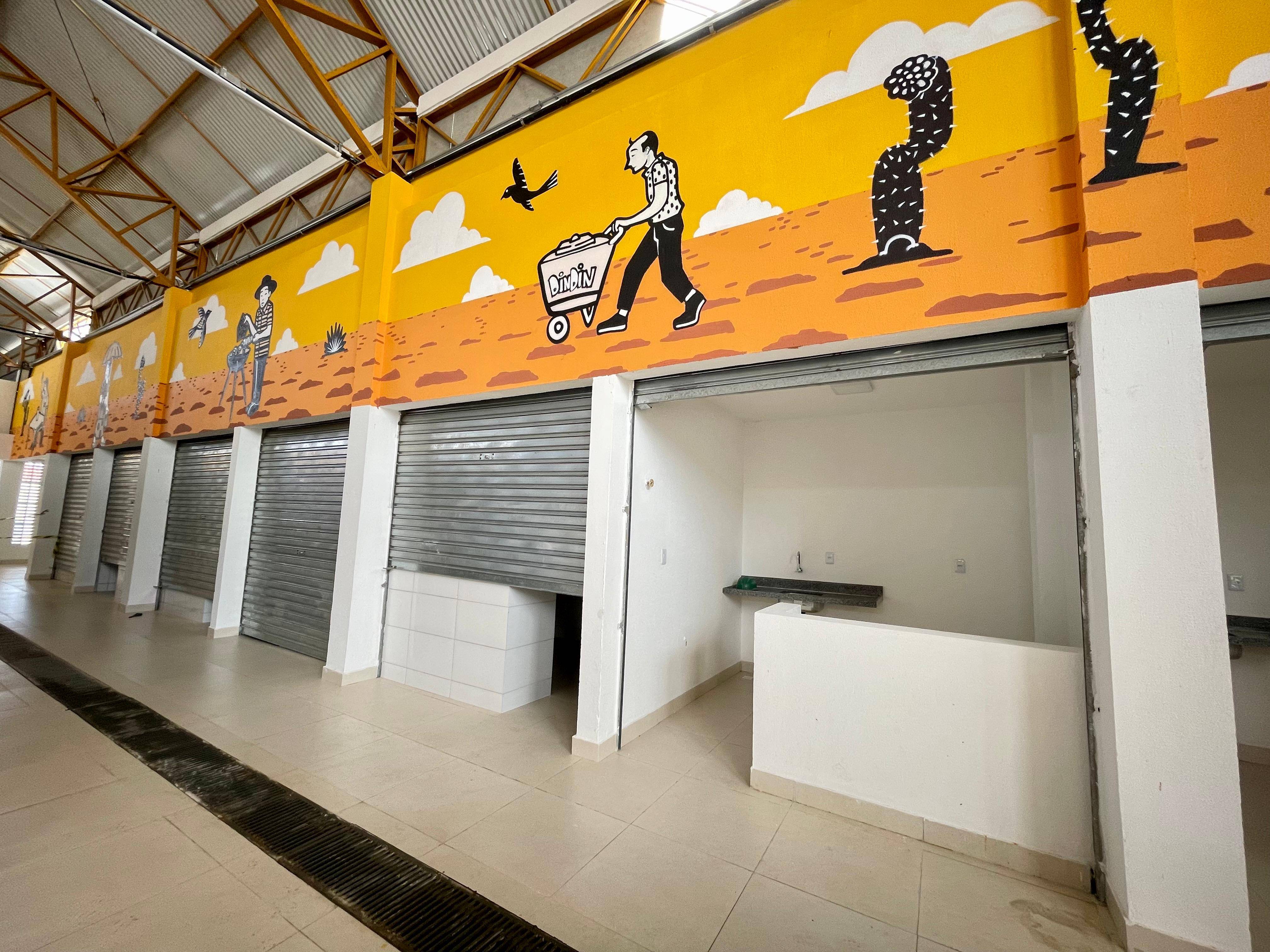 Um dos destaques do novo mercado são os painéis de grafite artístico que decoram o espaço interno. As intervenções foram criadas a partir de estudos sobre a cultura e o cotidiano dos comerciantes e moradores do bairro, transformando o local em um cartão-postal urbano.