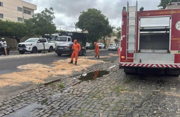 Segundo informações apuradas no local, o material deixou a pista escorregadia e fez com que condutores perdessem o controle dos veículos. Além da avenida principal, o problema também atingiu a Rua Território Fernando de Noronha, aumentando a área afetada.