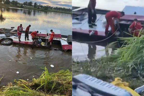 Segundo relatos de testemunhas, o acidente aconteceu após um carro que rebocava outro veículo tentar uma manobra na rodovia e colidir com o ônibus. O motorista do coletivo tentou desviar, mas perdeu o controle da direção, o que fez o veículo sair da pista e tombar dentro do açude, ficando parcialmente submerso.