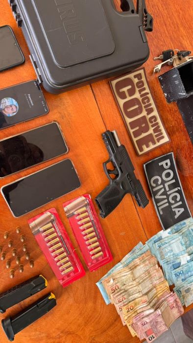 Durante a operação, os policiais apreenderam armas de fogo, munições, aparelhos celulares e dinheiro.