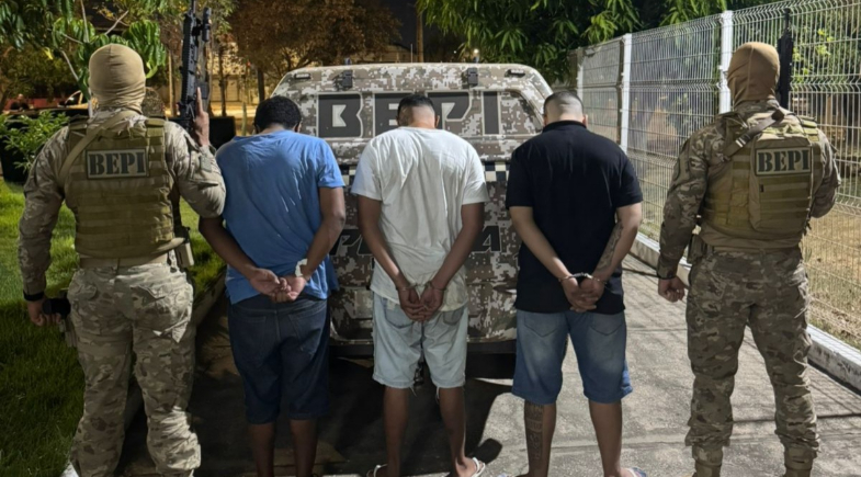 O Batalhão Especial de Policiamento do Interior (BEPI) prendeu quatro homens suspeitos de envolvimento no homicídio de Kaio Eduardo de Sousa, de 27 anos, ocorrido no bairro Novo Horizonte, zona Sudeste de Teresina, no domingo (24). Os detidos foram identificados apenas pelas iniciais H.V.d.S.A, de 26 anos, K.G.R.d.F, de 22 anos, P.V.S.C, conhecido como Boladão, de 18 anos, e P.A.S.S, de 42 anos.