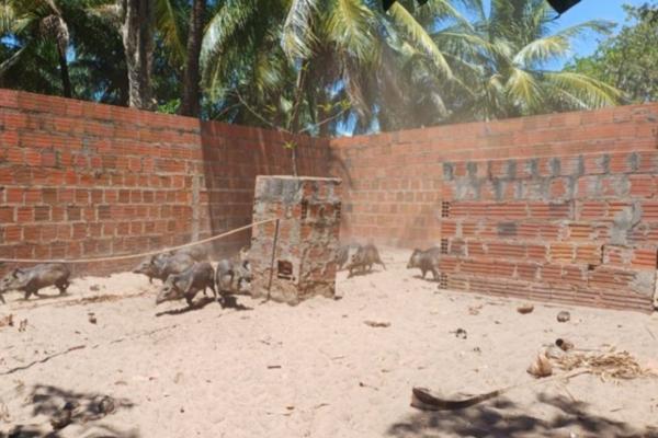 Durante a fiscalização no km 27 da BR-222, distrito de Alto Alegre, os agentes identificaram um estabelecimento com 18 caititus e cerca de 30 cutias sem licença ou autorização legal. A denúncia apontava que os animais eram abatidos e comercializados como carne de caça em um restaurante próximo, com o quilo do caititu chegando a R$ 40,00.