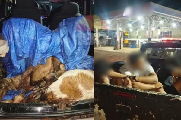 A abordagem aconteceu na localidade Lagoa do Barro, onde os agentes interceptaram um veículo utilizado pelo grupo. Durante a vistoria, foram encontrados dois bodes no porta-malas do carro, confirmando a suspeita de furto.