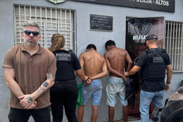 A Polícia Civil do Piauí cumpriu nesta terça-feira (26) mandados de prisão preventiva contra dois homens no bairro Barroquinha, em Altos, Região Norte do estado. Os detidos têm as iniciais M.C.S., de 20 anos, e R.C.S., de 26 anos. A operação contou com o apoio do DRACO, da Delegacia de Alto Longá e da Guarda Civil Municipal de Altos.